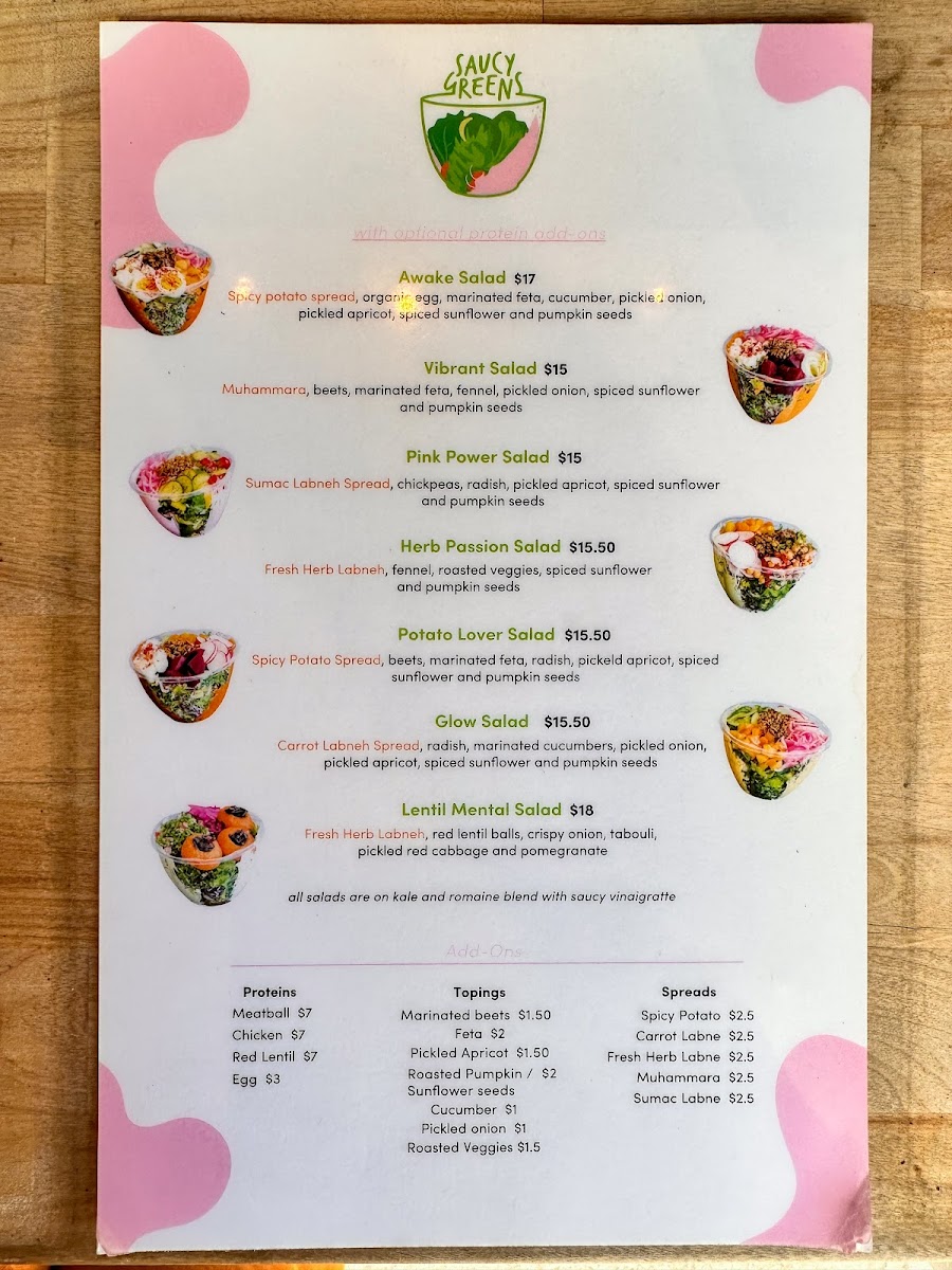 At Saucy Greens Salad Shop, the menu offers a thoughtful selection of nourishing and satisfying options centered around fresh, wholesome ingredients. Ideal for a casual lunch or a light yet filling dinner, the dishes reflect a balanced approach to health-conscious eating, with plenty of choices for vegan, vegetarian, and halal diets.